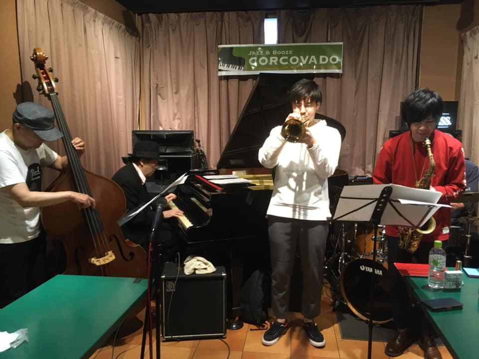 まずホストメンバーですが、トランペットの宮本くんが私が東京在住時代からの知り合いで、去年も一緒に2回ライブをやりました。ベースの堅登くんはその去年の宮本くんの阿佐ヶ谷マンハッタンのライブの時に初めて共演しました。ドラムの方は初めてです。原大力さんはもちろん昔から有名ですが、私はセッション程度しかやった事がありませんでした。