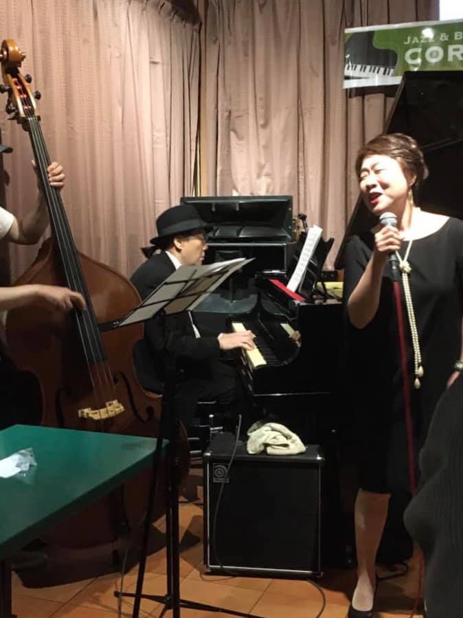 池田芳夫(b) 高樹レイ(vo) 私(p) 村上寛(ds)