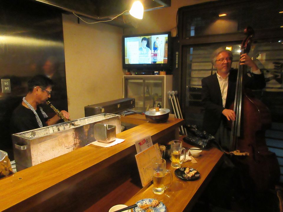 店内へ。久しぶりの挨拶。以前はよく一緒にセッションをやったのですが、今は焼鳥屋の店長ですからね。