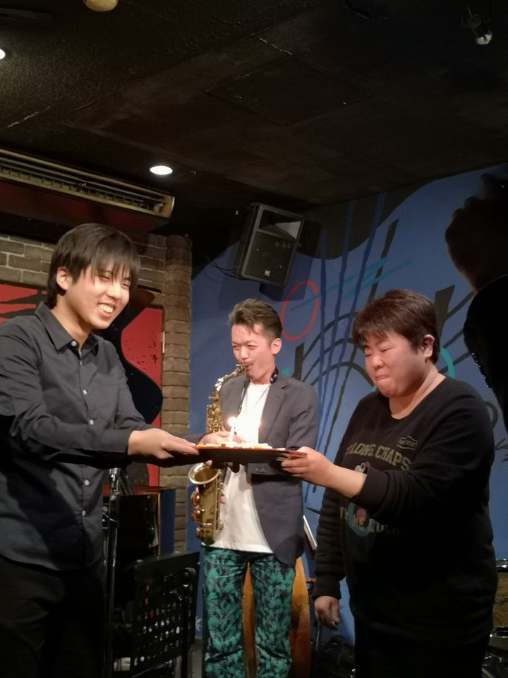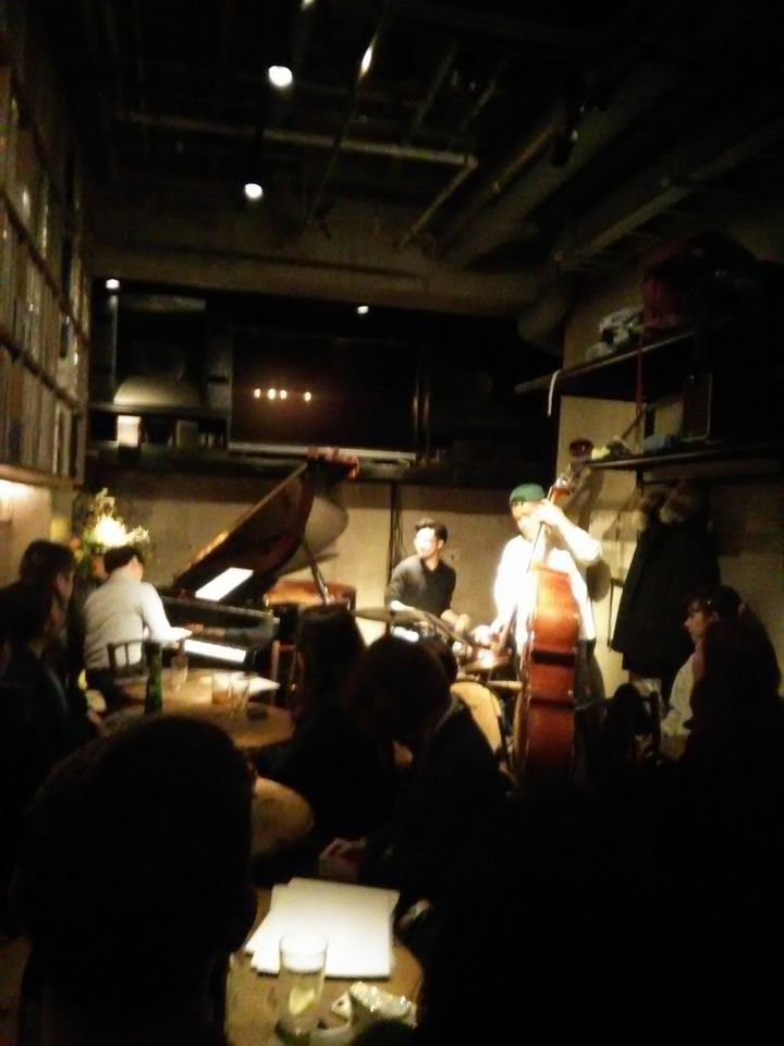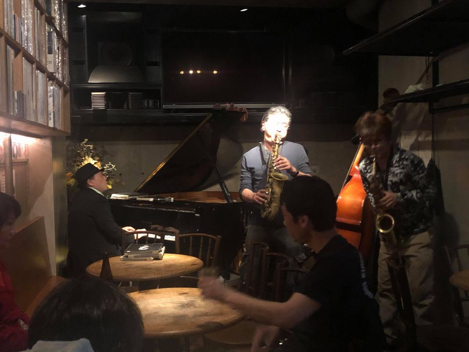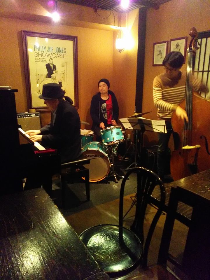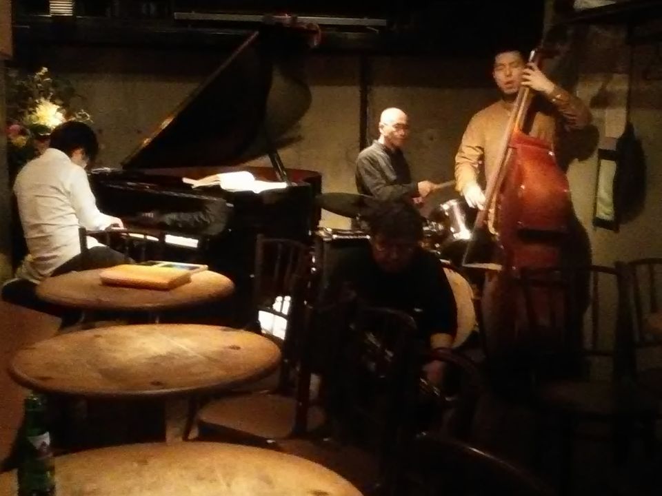 そして決まったのが、たまたま知り合いだったベースの小牧くんとドラムの吉岡くんでした。小牧くんは以前福岡在住だったのでよく共演していて、前回の上京でも偶然別の店で一緒になりました。吉岡くんは、彼とも話しましたが、おそらく20年ぶりとかです。以前、私が東京在住の時によく共演していましたが、マスターのおかげでとても久しぶりに会う事が出来ました。