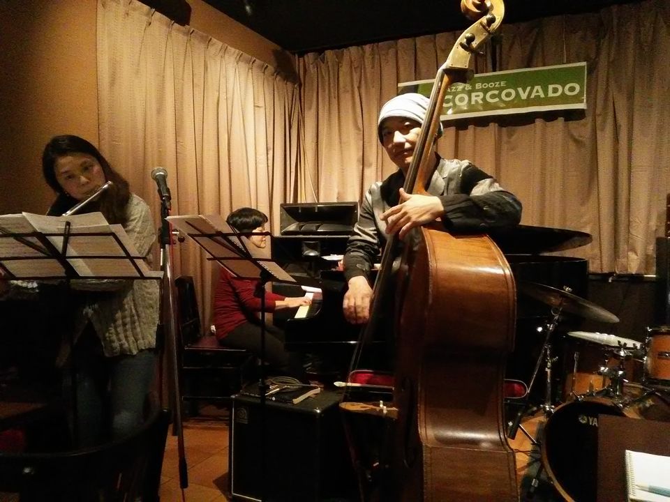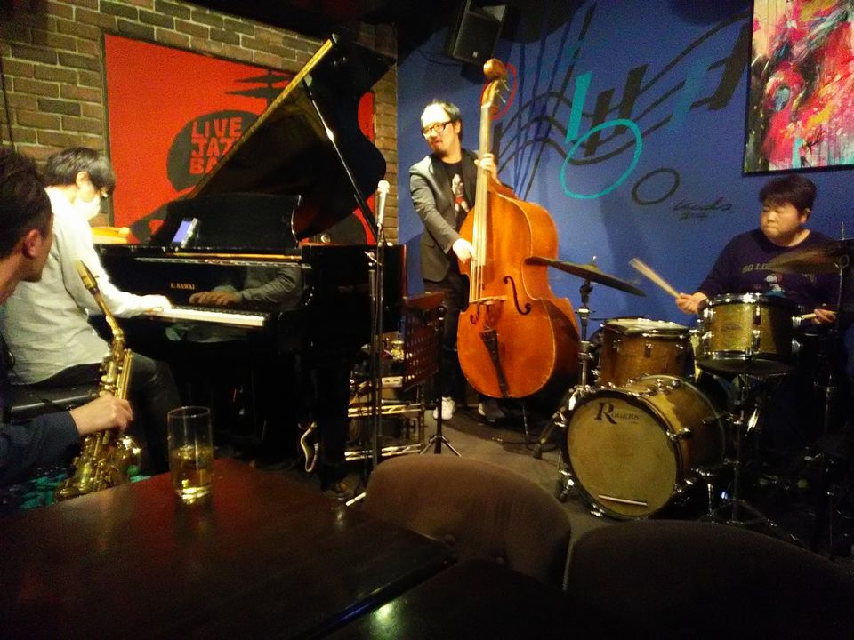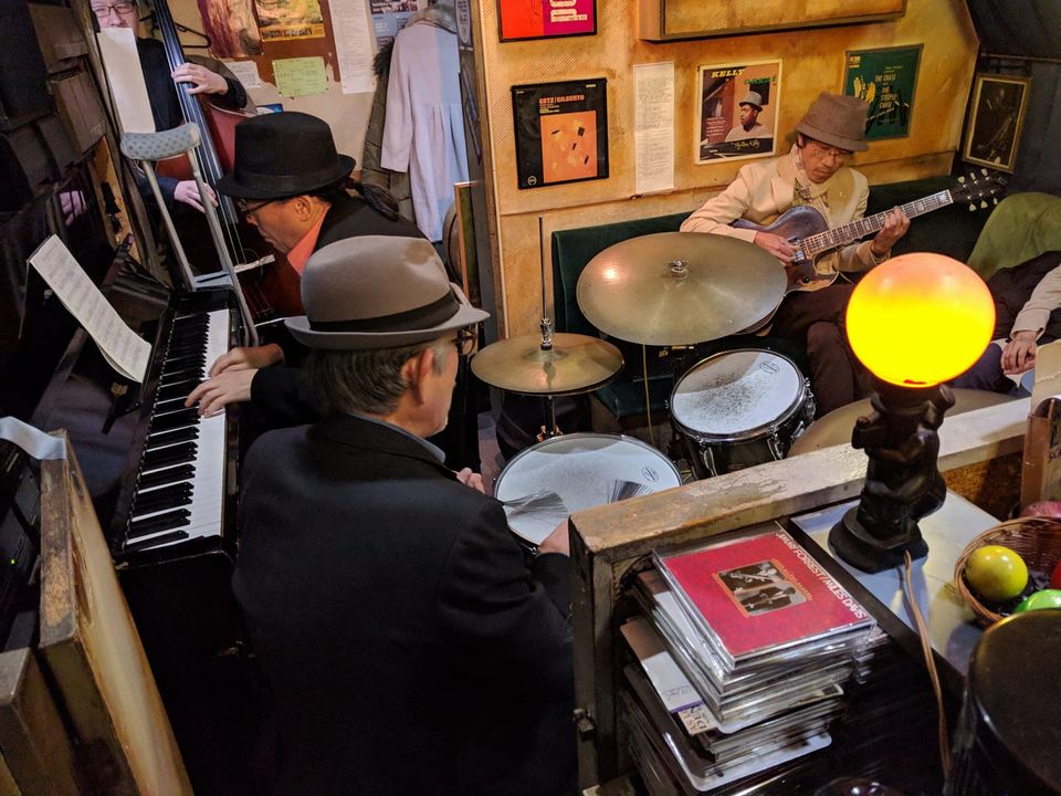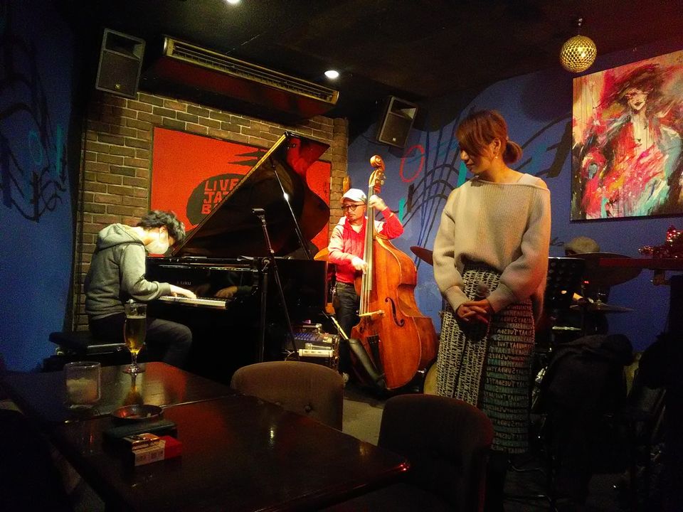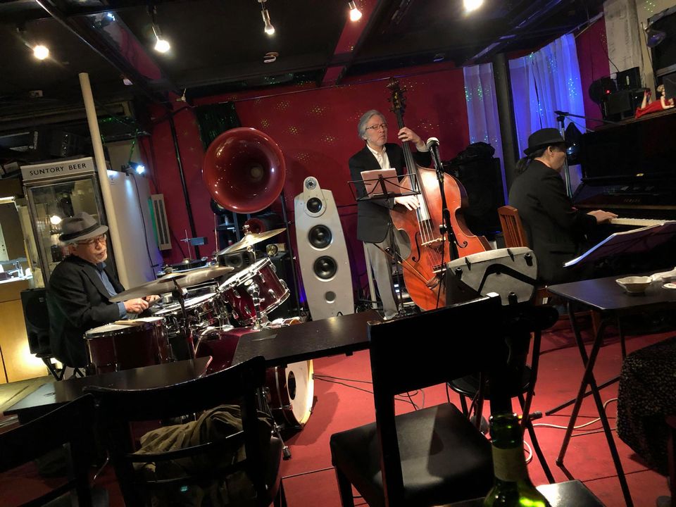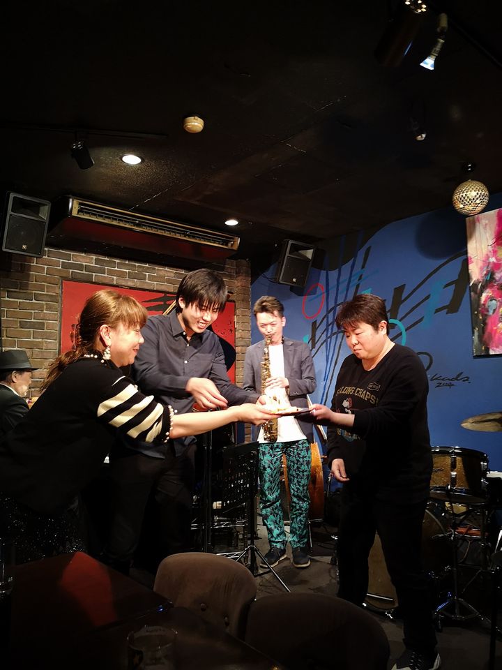そして決まったのが、たまたま知り合いだったベースの小牧くんとドラムの吉岡くんでした。小牧くんは以前福岡在住だったのでよく共演していて、前回の上京でも偶然別の店で一緒になりました。吉岡くんは、彼とも話しましたが、おそらく20年ぶりとかです。以前、私が東京在住の時によく共演していましたが、マスターのおかげでとても久しぶりに会う事が出来ました。