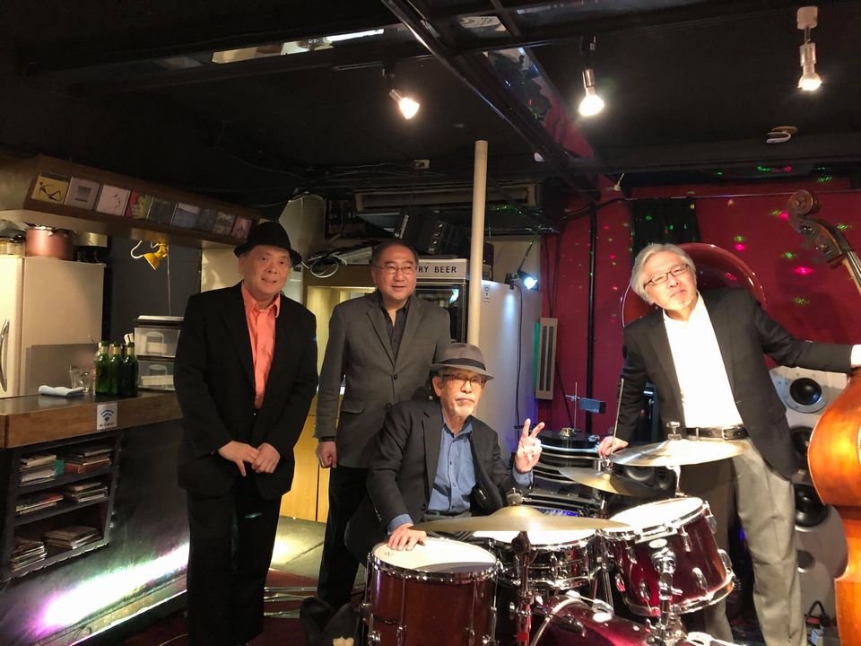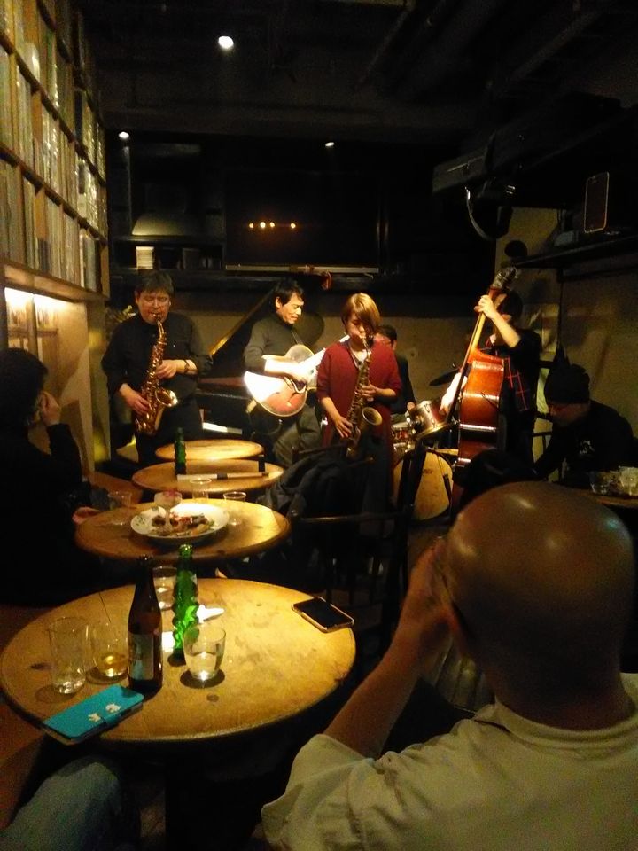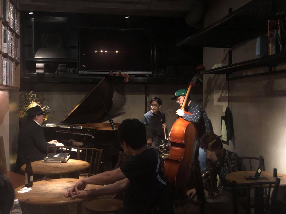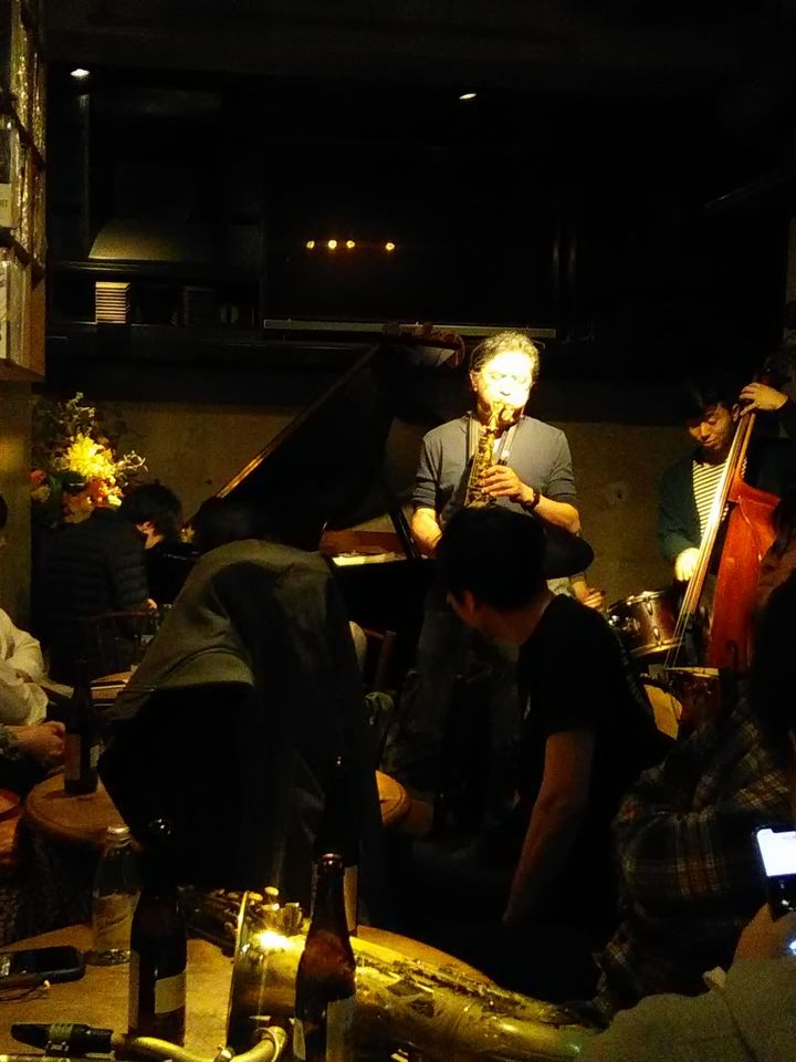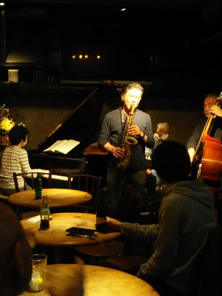 さすがにお客さんは少なかったですが、それでも参加者が来ていてセッションになっていたのは凄いです。ホストベーシストはお初の千葉征央くん、素晴らしかったです。途中でドラムの濱田省吾くんが来店しました。この上京で2回め。素晴らしかったですね。もちろんマスターのドラムや店長でアルトの井上さんも参加しました。