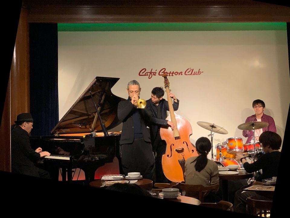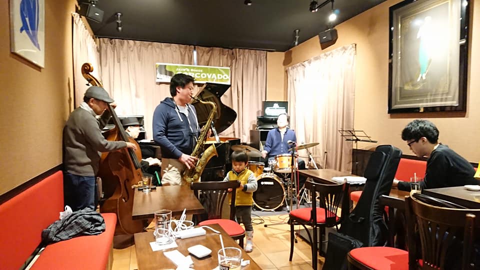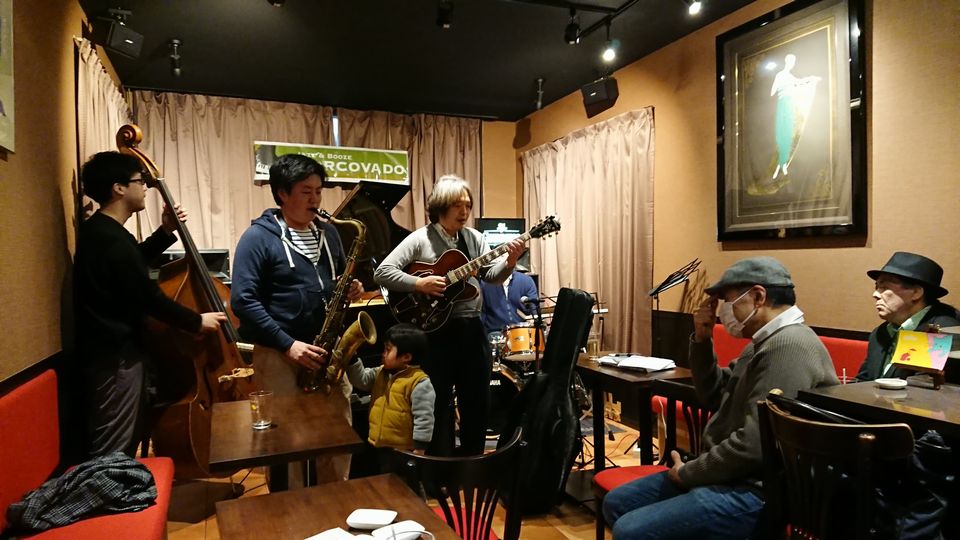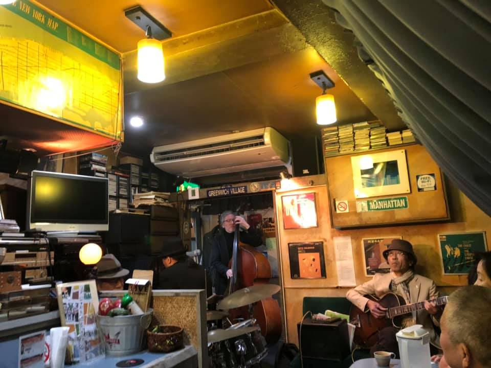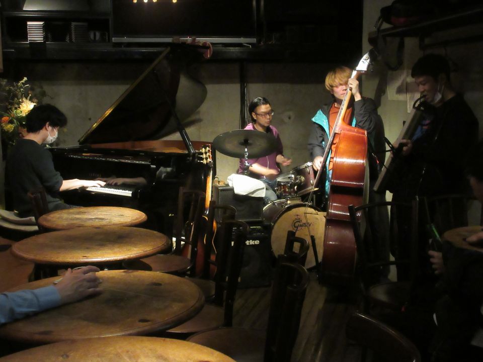 さすがにお客さんは少なかったですが、それでも参加者が来ていてセッションになっていたのは凄いです。ホストベーシストはお初の千葉征央くん、素晴らしかったです。途中でドラムの濱田省吾くんが来店しました。この上京で2回め。素晴らしかったですね。もちろんマスターのドラムや店長でアルトの井上さんも参加しました。