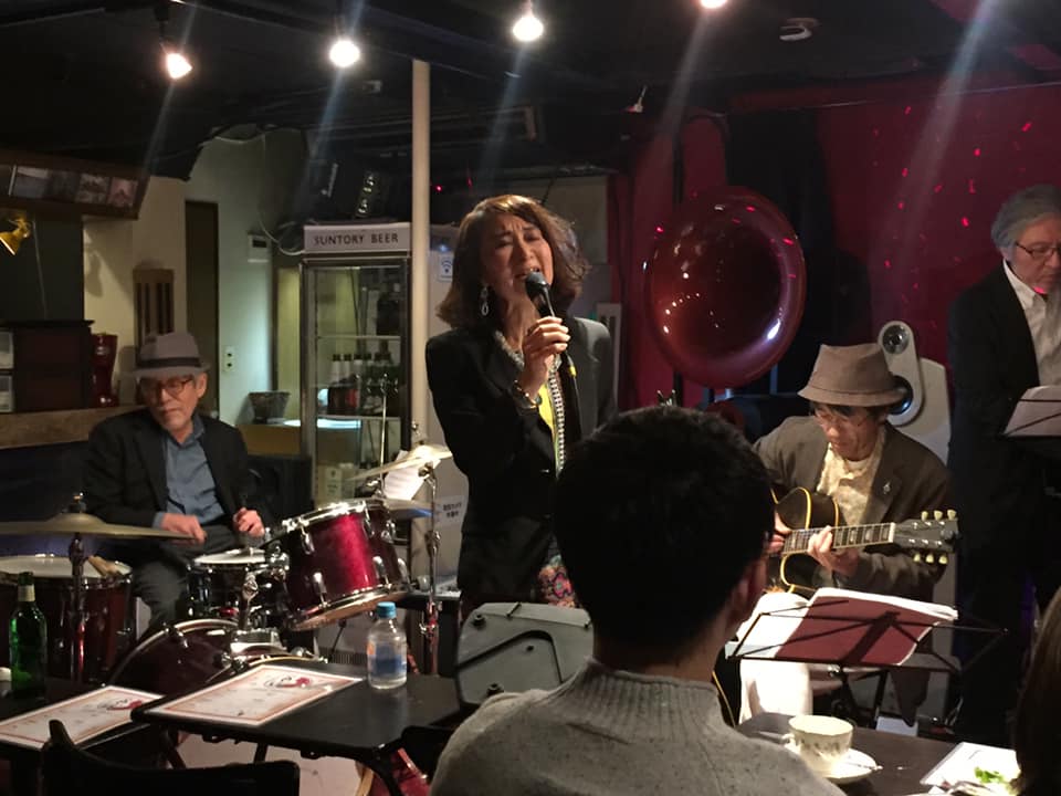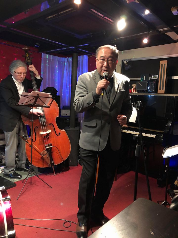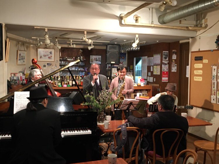 恒例の諸田さんのグループで、ベースもお馴染みの林さん、そしてこの日のヴォーカルは1年前に一緒にライブをやった田中国夫さんでした。他のライブのお客さんとしても来ていただいています。
