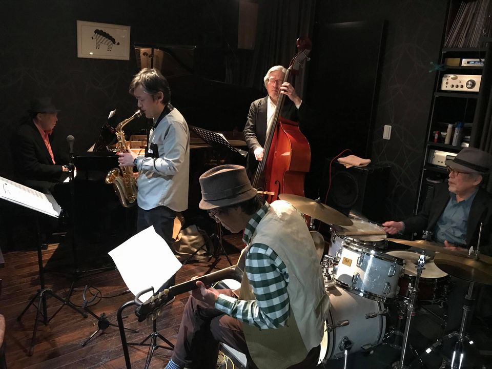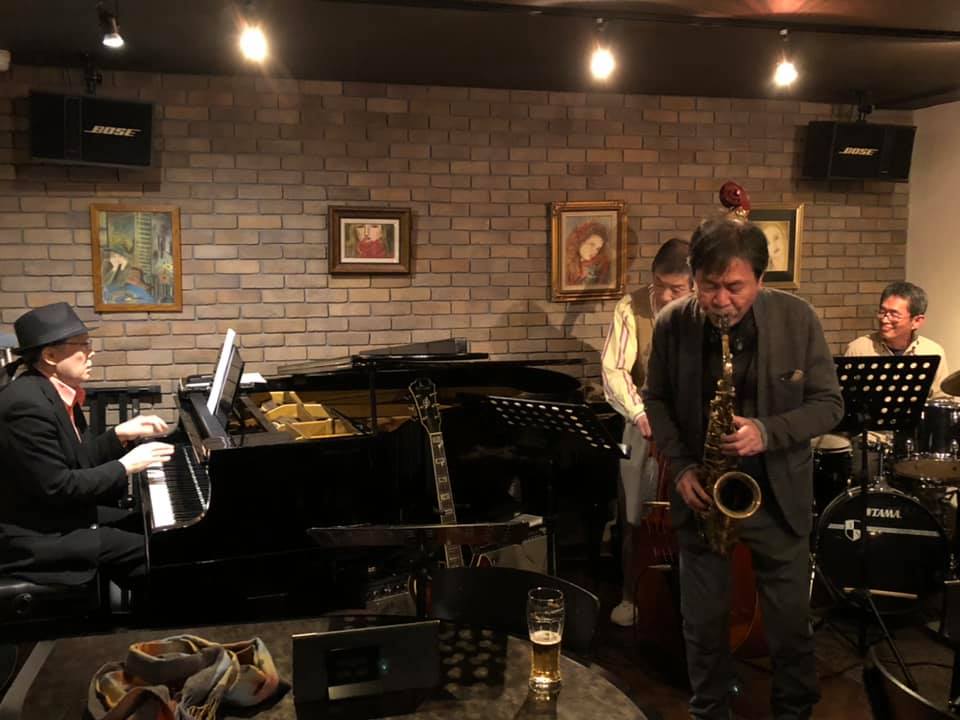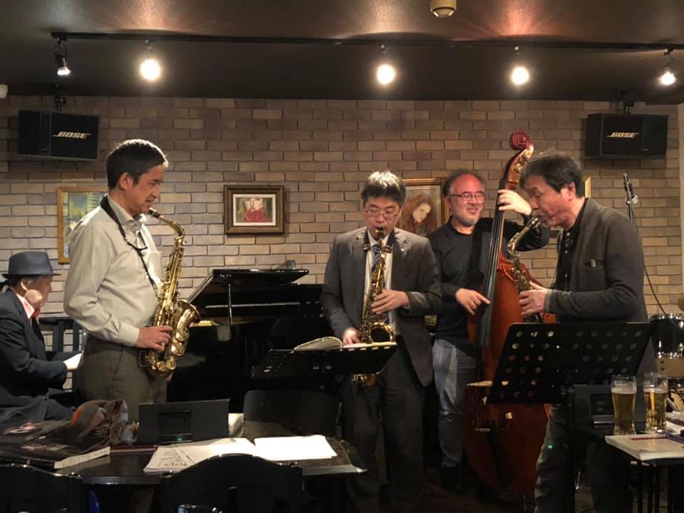 恒例の諸田さんのグループで、ギターとベースはお馴染みの小泉さんと林さん、そして2週間近く前にフォンタナで久しぶりに一緒だったアルトの宮崎くんが参加してのライブでした。その時のライブと同じメンバーです。
