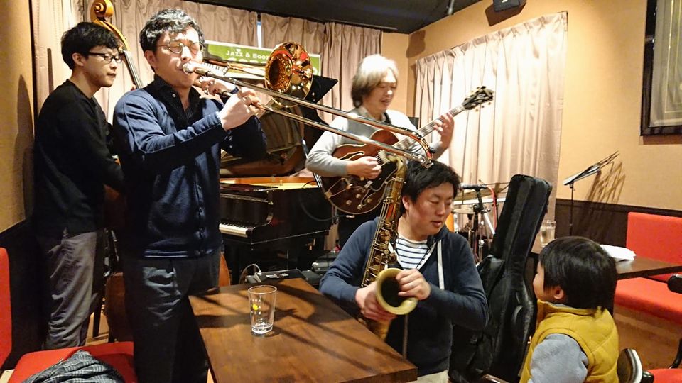 海堀弘太(p) 辻(g) ゴッド井上(as, 店長) 若井俊也(b)