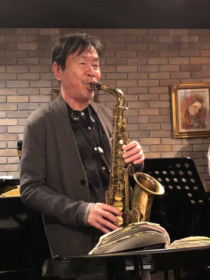 福岡県大牟田市出身の素晴らしいベテランアルトサックス奏者、大森明さんのライブ&セッションでした。ベースは初めての岡本昌三さんです。