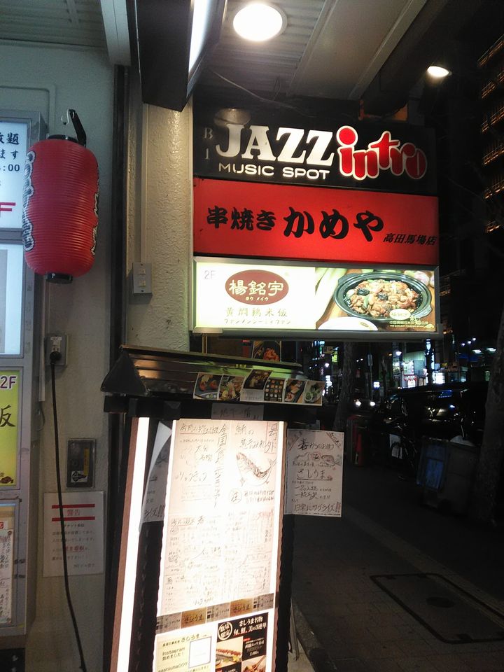この日は元々ライブがあったのですが、店の事情で中止となり、そのメンバーで飲みに行く事にしました。メンバーは、ずいぶん前からの知り合いでヴォーカルのちゅうまと、同じ北九州出身でベースの高尾さん。行ったのは新宿三丁目駅すぐの「呑者家(どんじゃか)」本店。高尾さんが昔よく行っていた店だそうです。私とちゅうまは初めてでした。