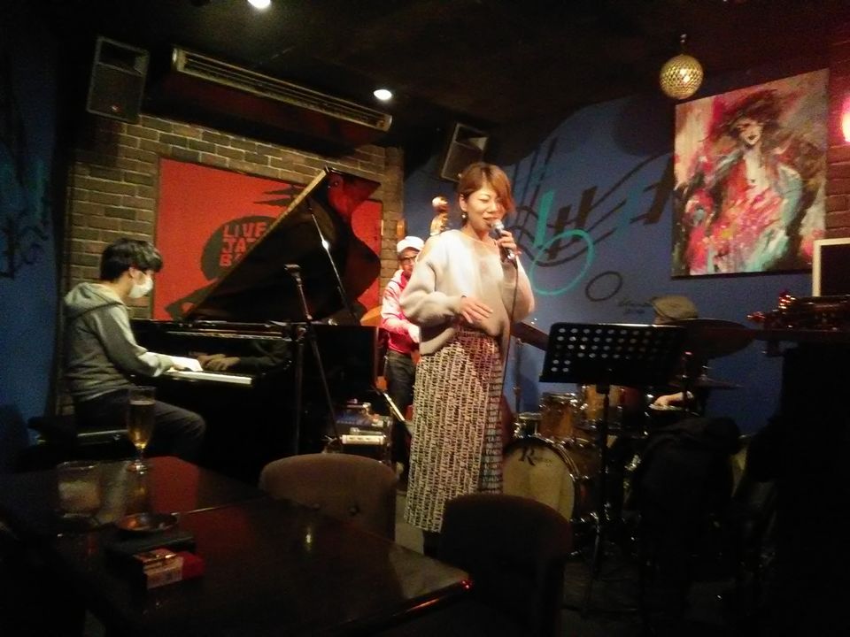 知人のお客さんで、3日前に一緒にライブをやった田中国夫さんと、今回の私のライブにも何回か来ていただいているマミさんが来店し、お二人とも2ステージ目にヴォーカルで飛び入り参加しました。他に、これまた何度もお客さんで来ていただいている油井さんもいらっしゃいました。