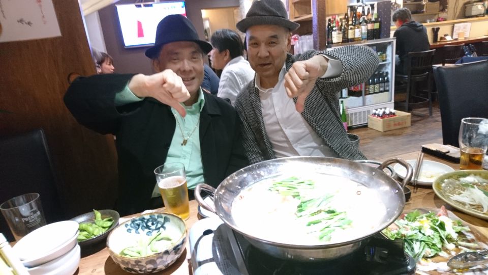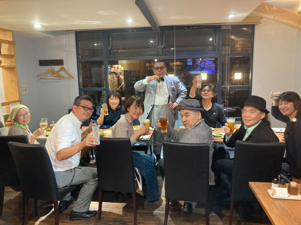 終わって、別の店で打ち上げを行う事になりました。私は帰れれば帰ろうと思っていましたが、帰ると短時間しかいられず、右近さんともこの日でお別れなので、打ち上げの最中にホテルを予約し、最後まで参加しました。深夜2時までとても楽しい打ち上げでした。