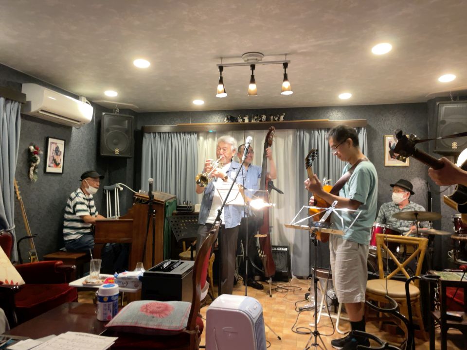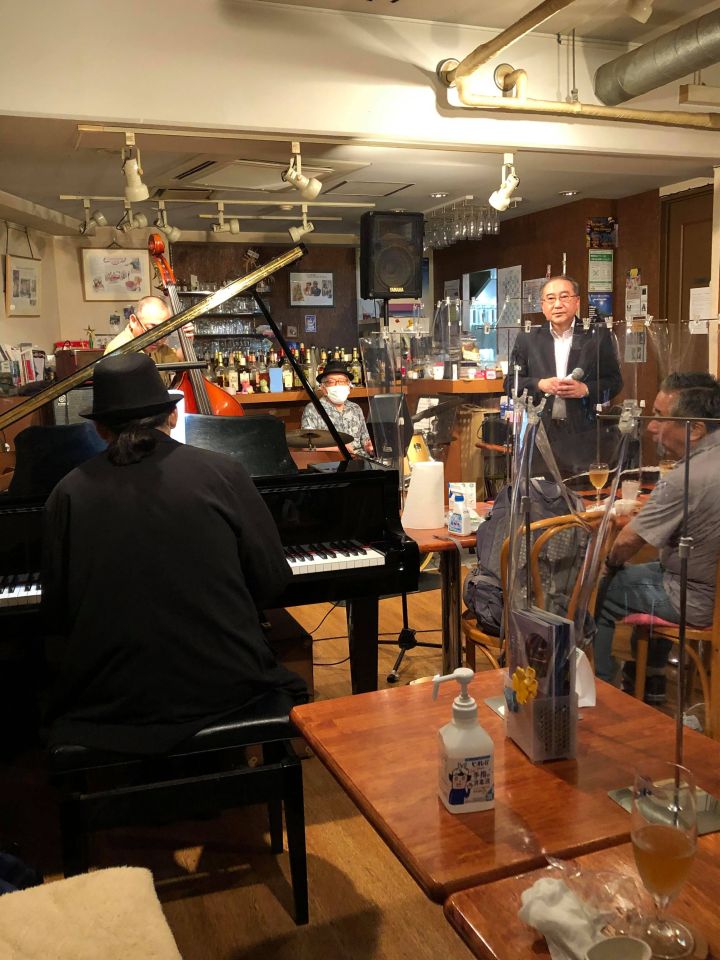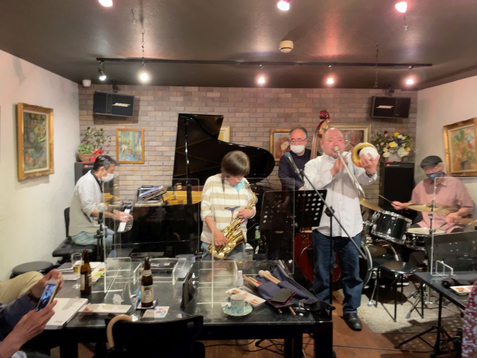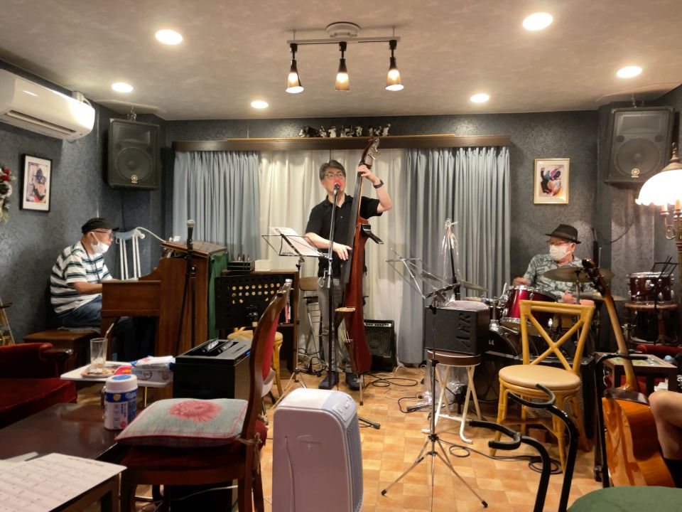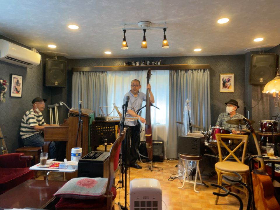 クンボーさんとは3回目かな。お客さんでもよくいらしていただいています。ジャズだけでなくヨーデルや歌謡曲もありました。