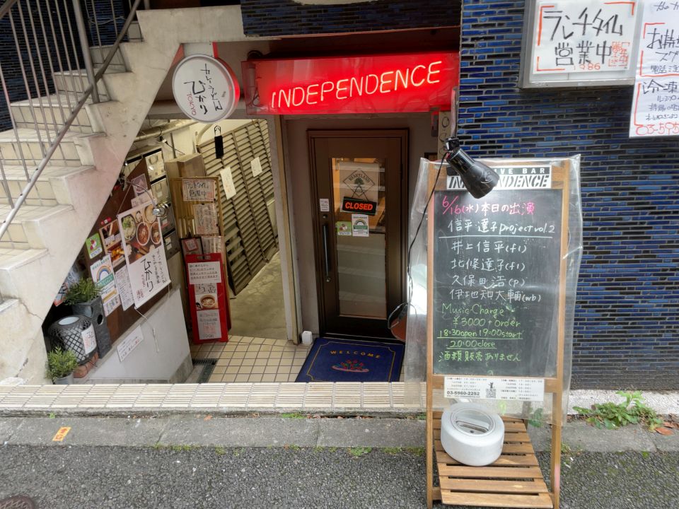 インディペンデンスのオーナー、北條さんのおかげで、前回の上京の時に久しぶりに共演が出来た素晴らしいフルート奏者、井上信平さんとのライブでした。北條さんも参加しました。ベースも前回と同じく大活躍中の素晴らしい若手、九州は鹿児島出身の伊地知くんでした。