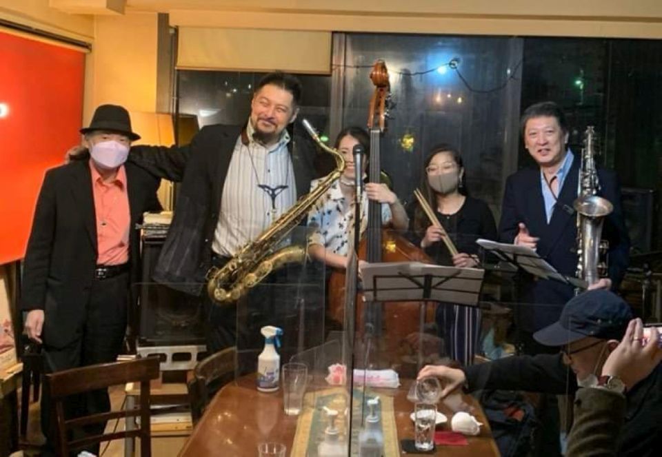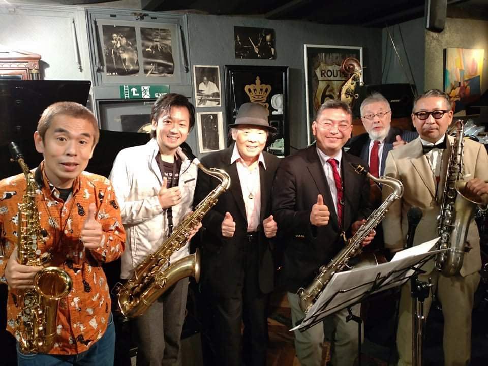 長野次郎(as) 碓井雅史(ts) 私(p) 高橋正樹(ts) ジャンボ小野(b) 右近茂(ts, cl)
