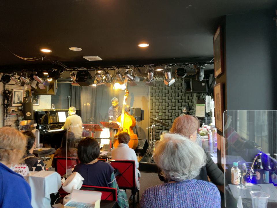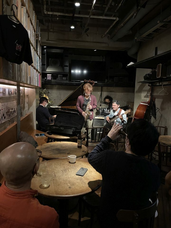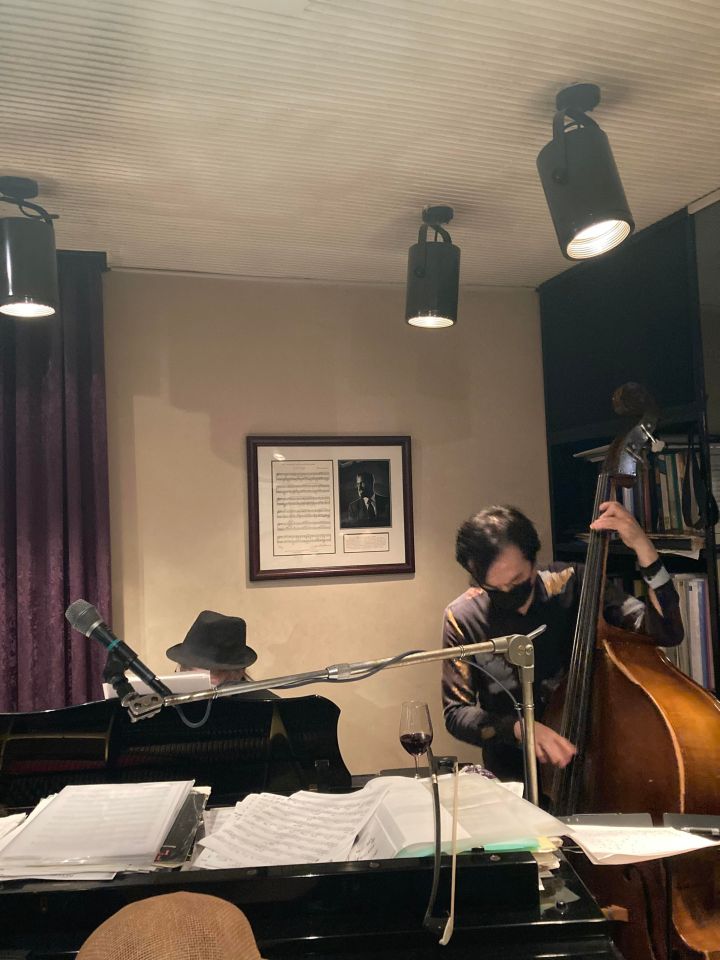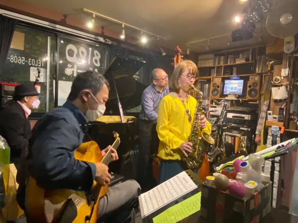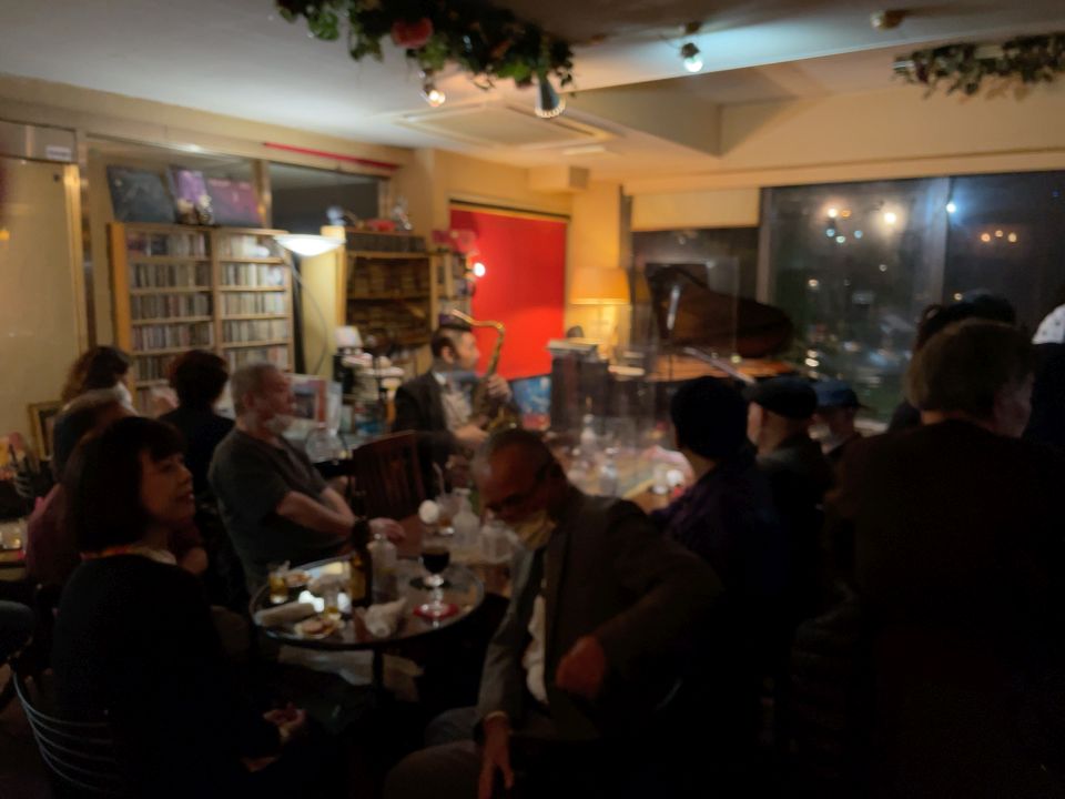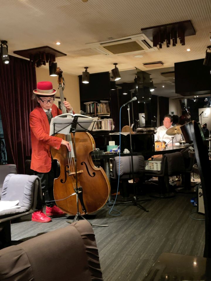 この日は、たまたまカナダ在住で福岡で知り合ったテナーの碓井くんが東京にいて来店、あと私はお初だった長野さんが来店し、碓井くんは最初からほぼ全編、長野さんは2ステージめに飛び入りしました。