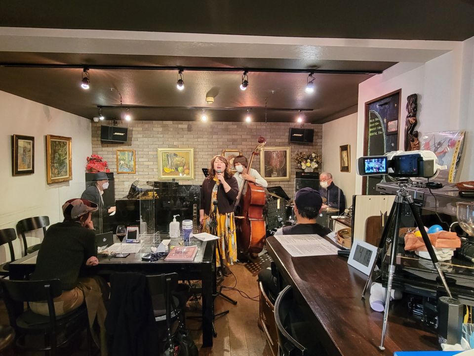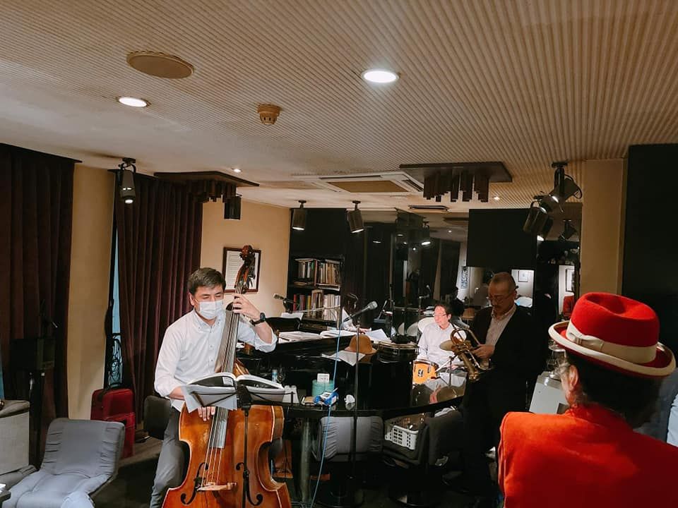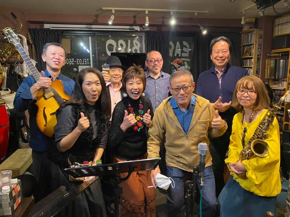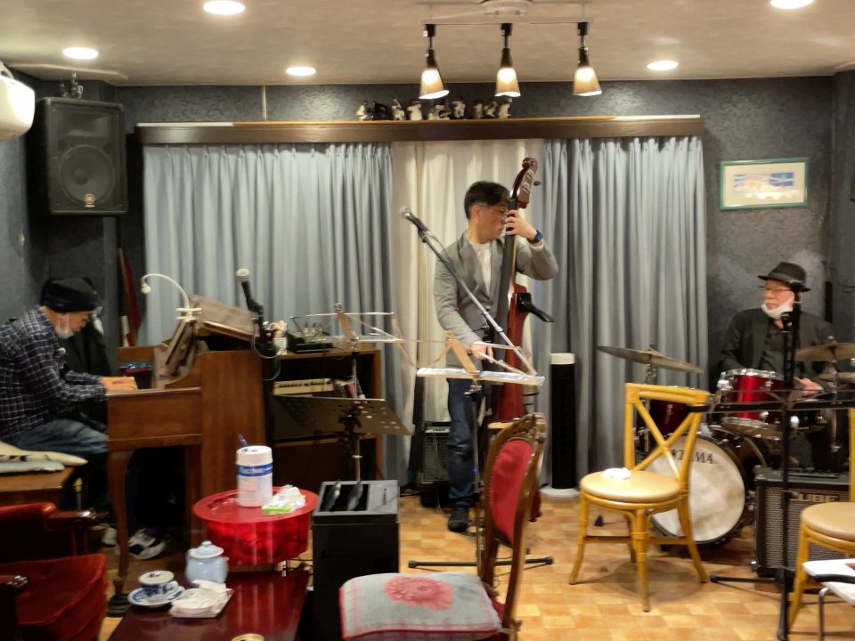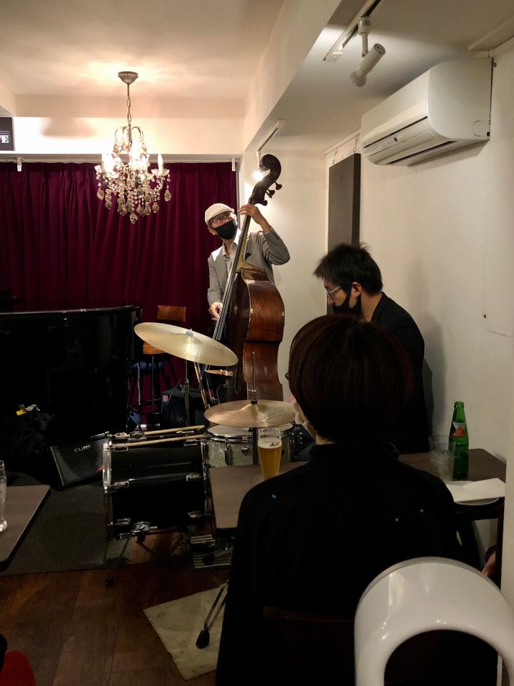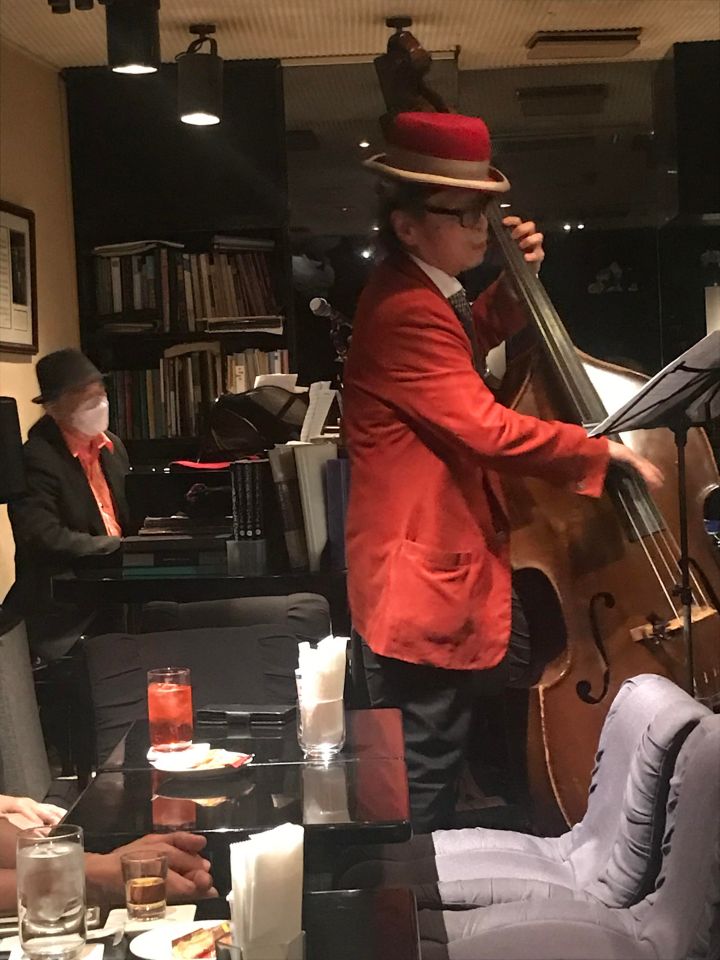 この日は、たまたまカナダ在住で福岡で知り合ったテナーの碓井くんが東京にいて来店、あと私はお初だった長野さんが来店し、碓井くんは最初からほぼ全編、長野さんは2ステージめに飛び入りしました。