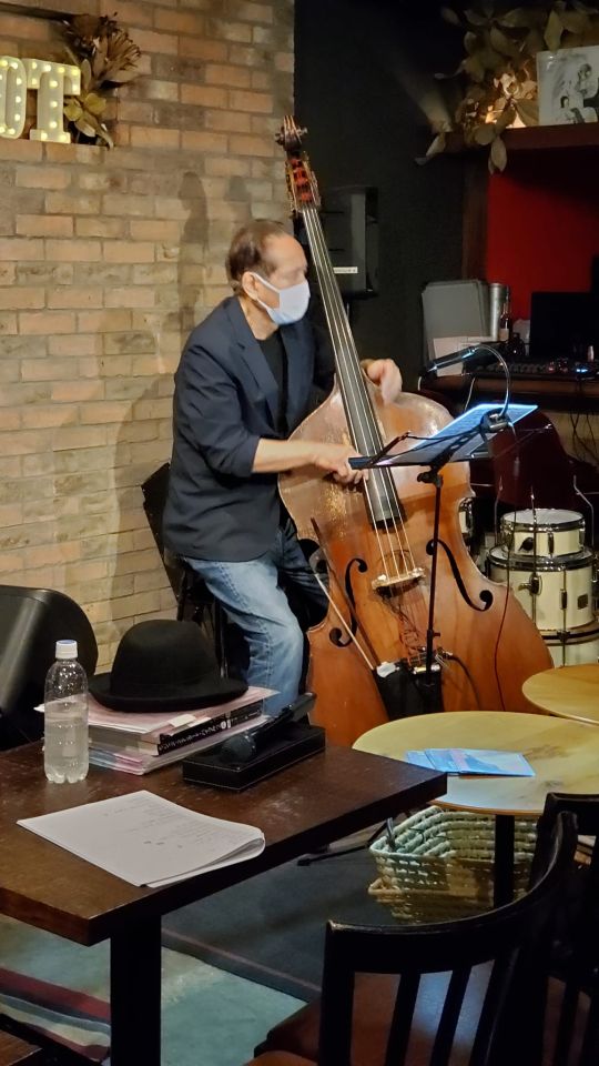 早い時間、まだお客さんが入ってなく、トリオで演奏でもしようかという事で枯葉を始めたものの、工藤くんがお客になってしまい(^^)、デュオとなってしまいました。でもこの演奏がとても楽しかったのです。お初の馬場くんの素晴らしい事。この後の演奏が楽しみになりますね。