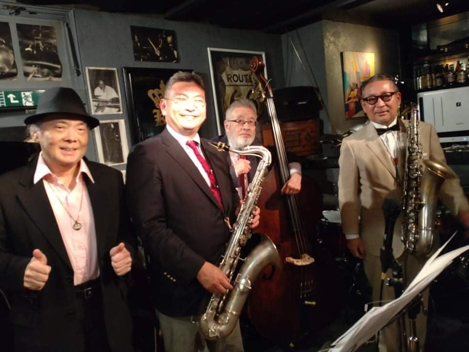 私(p) 碓井雅史(ts) 高橋正樹(ts) ジャンボ小野(b) 右近茂(ts)