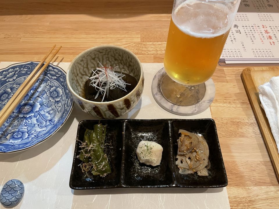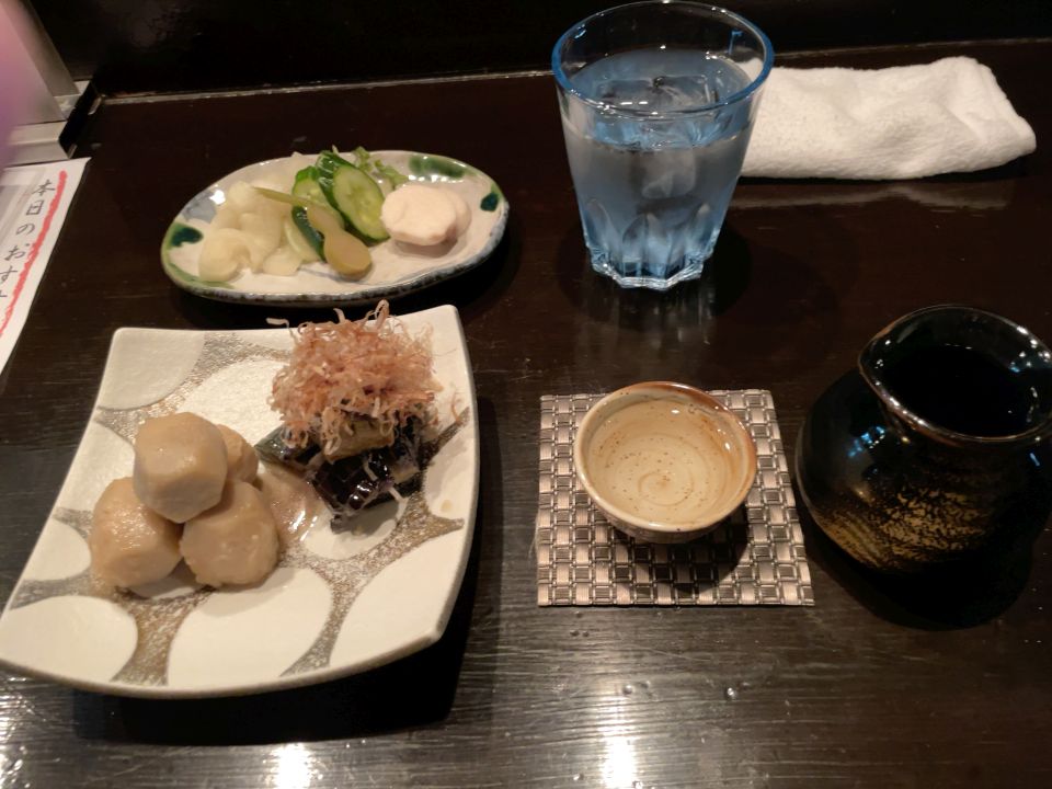 お通しの左はピーマンの煮物っぽかったです。美味かったです。