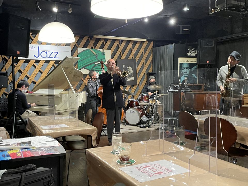 入ると、たまたま横に、前週の「さうりる」のライブの時にセッション参加していただいたトランペットの方がいらっしゃいました。