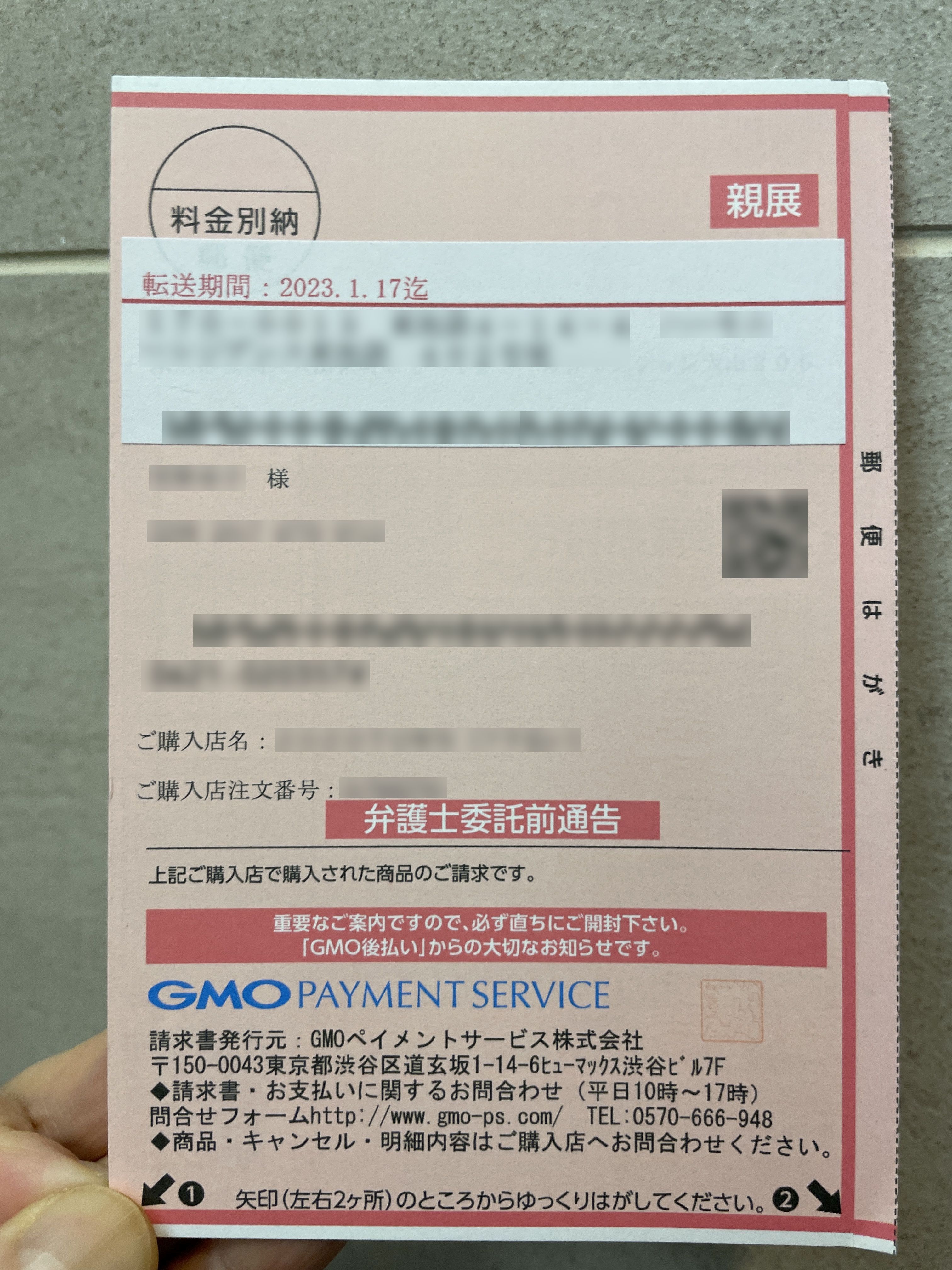 一番最初に来たGMO後払いの催促でしょうね。