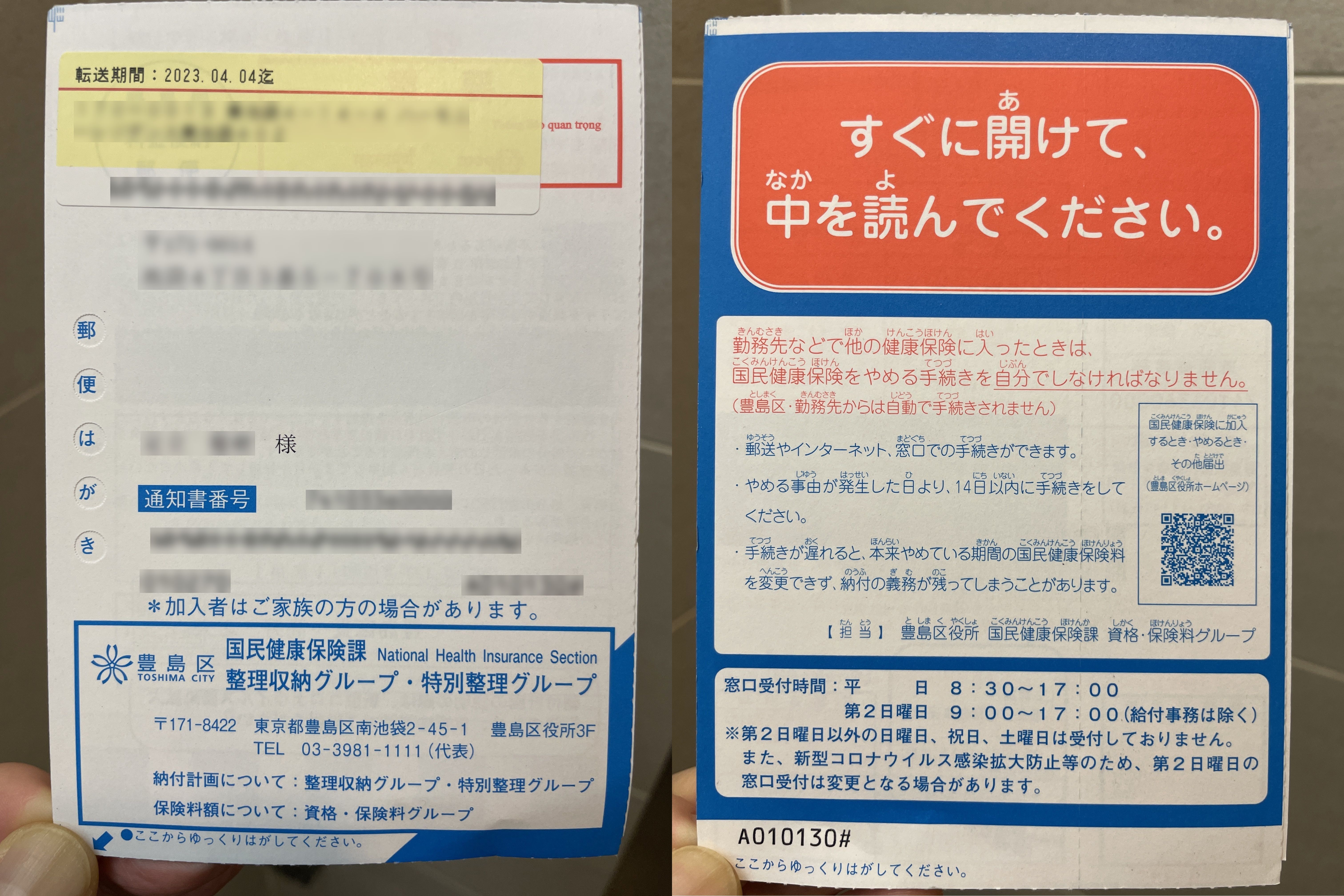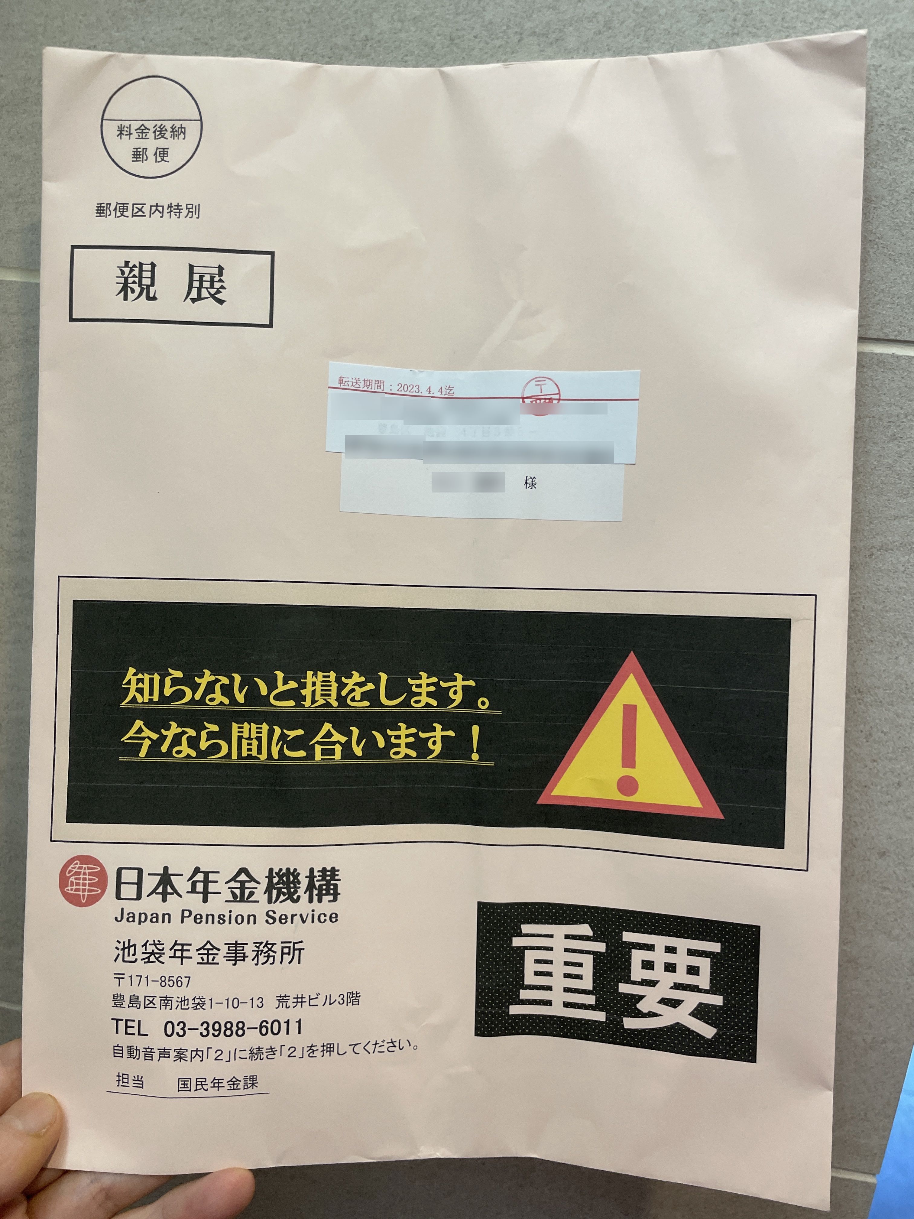 国民健康保険だけでなく国民年金が来ました。