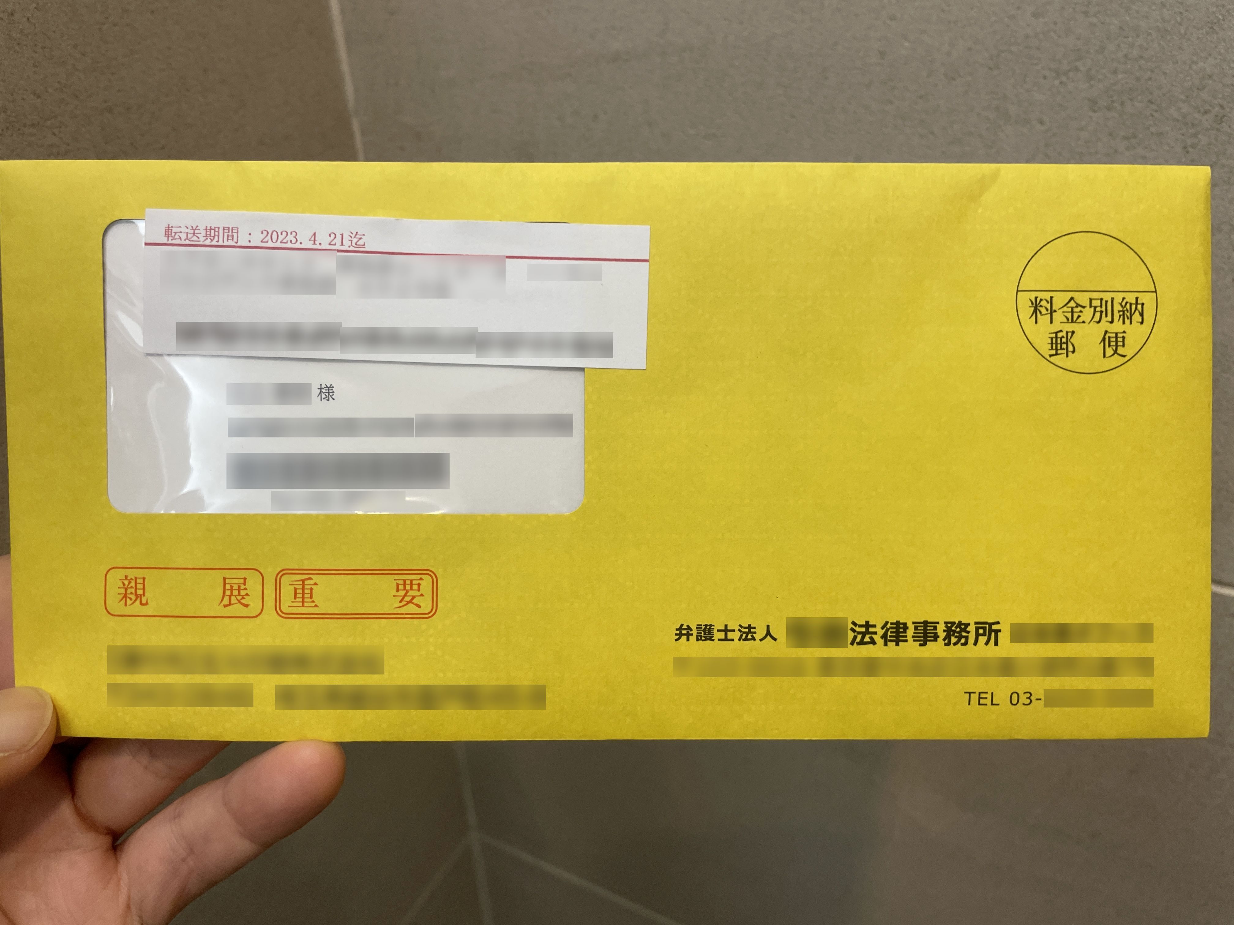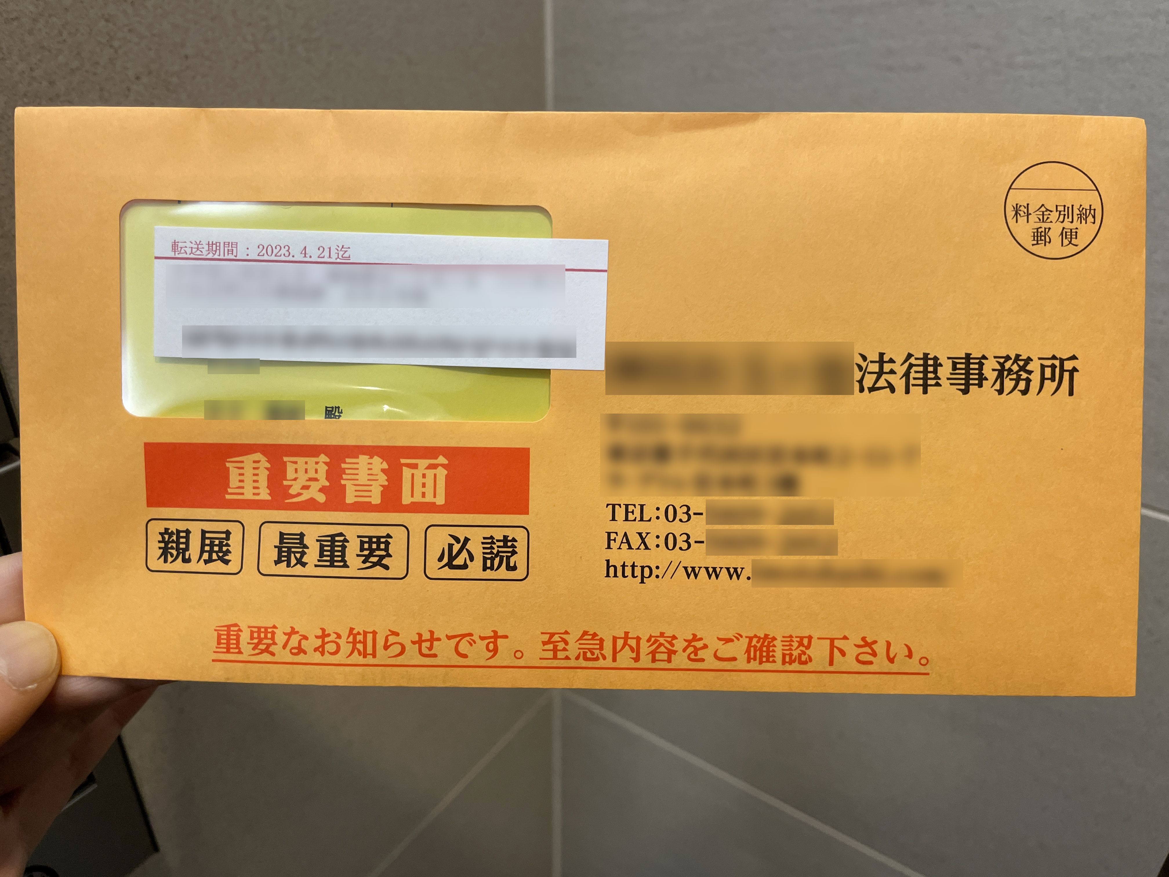 6月16日に届いていた弁護士事務所からです。