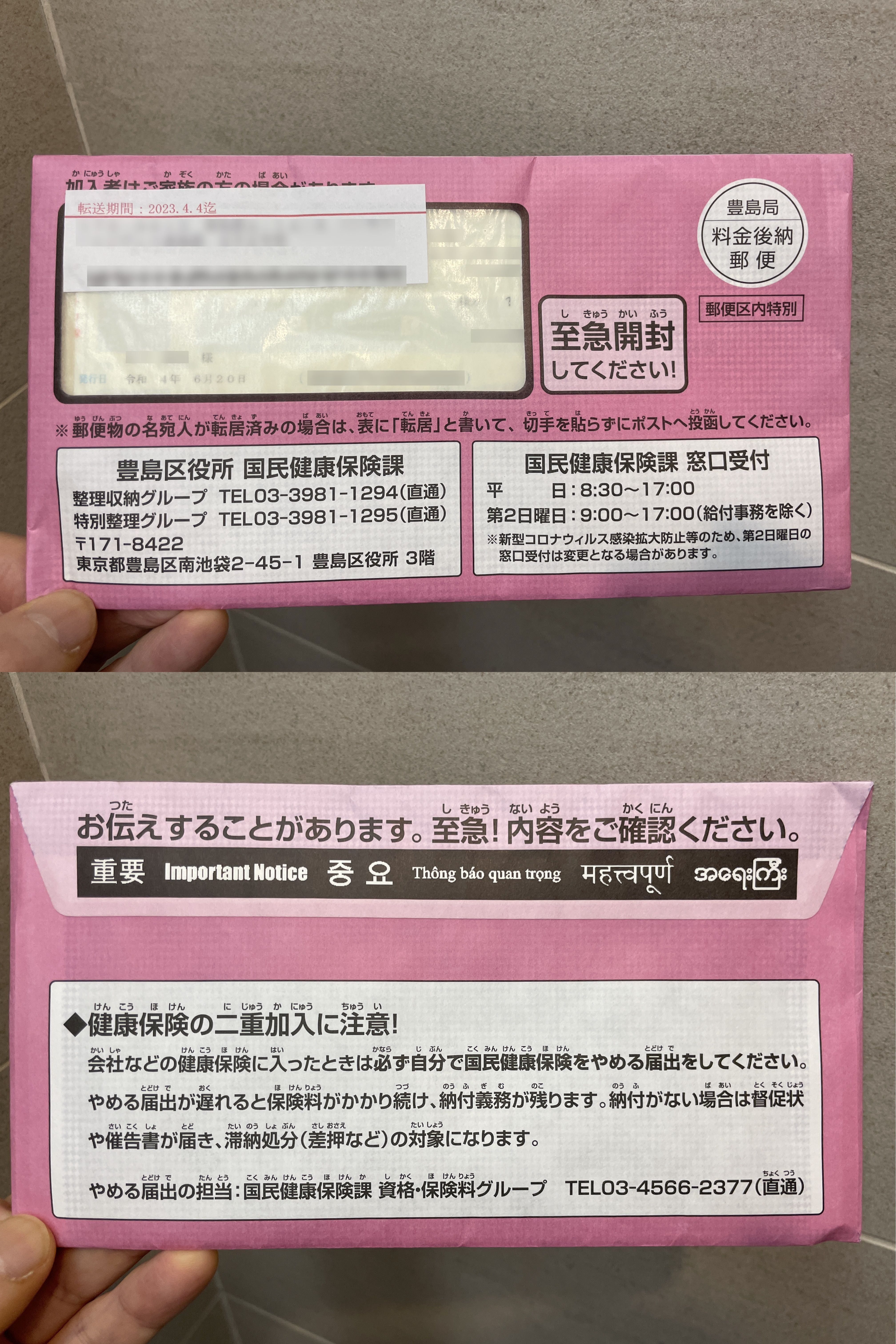 とまあ、宛名が1人で滞納だけだったらナゾは何も無かったのですが、2名な上によく分からない事になっていました。自分の事ではないとはいえ、赤色の滞納郵便物が郵便受けに入っているとビックリしますよ。