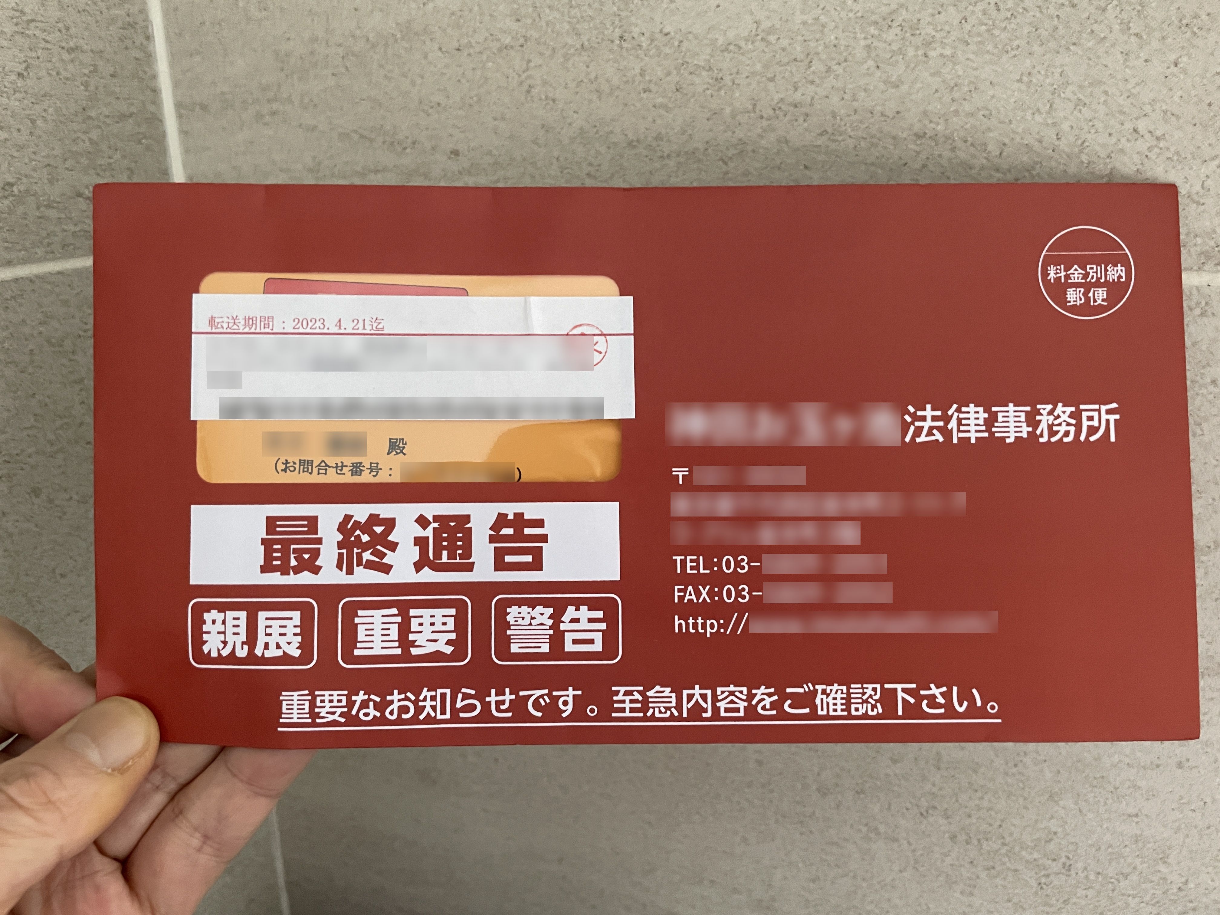 弁護士委託前通告。