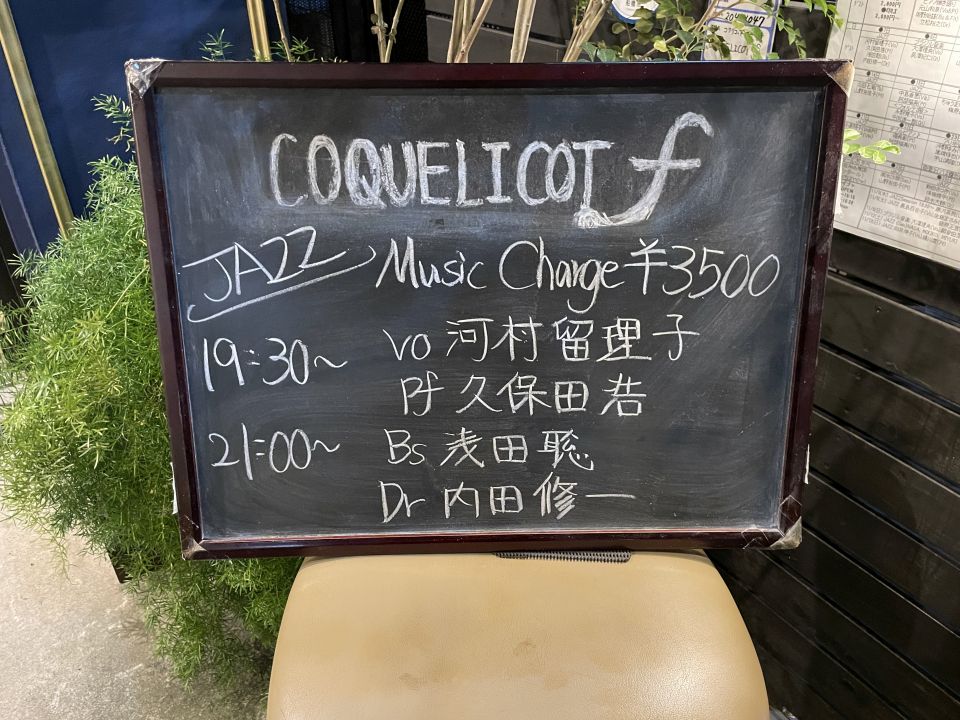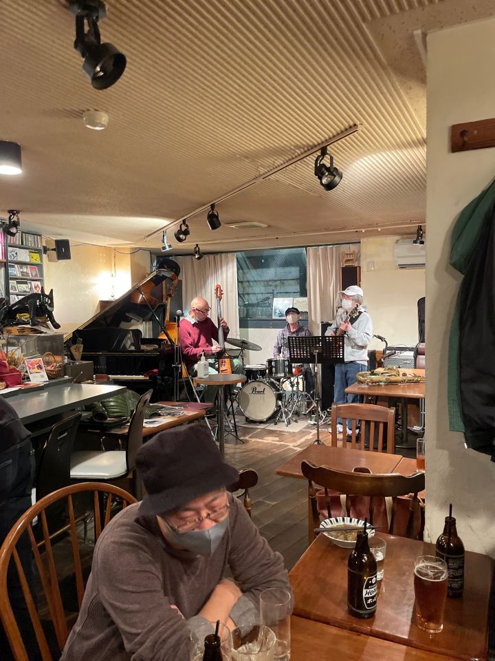 ヴォーカルの井上夏代さんは、会ってはいますが、ライブは3年ぶりでした。Yoshikoさんは初めてでした。でも共通の知人もいたりで会話は楽しかったです。ベースの大森くんはここ最近よく共演しています。