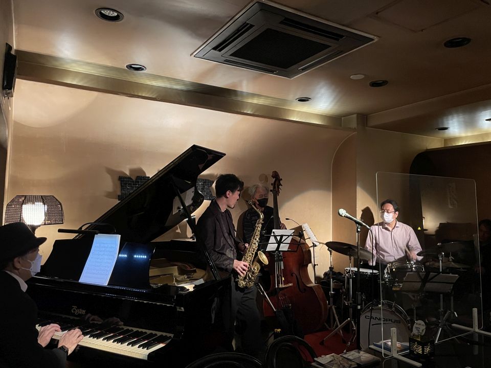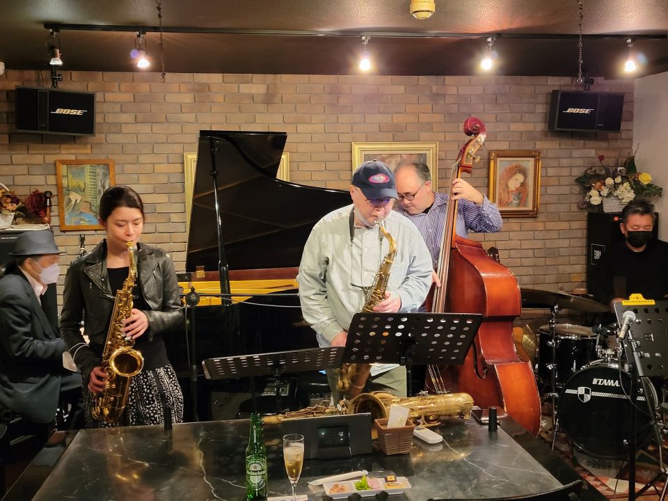 アルトの高橋里実ちゃんは前回の上京で初共演、ベースの柳原さんは以前どこかでお会いした事があるかも程度でライブは初共演、ドラムの安川さんは滋賀県在住ですが東京で初共演となりました。