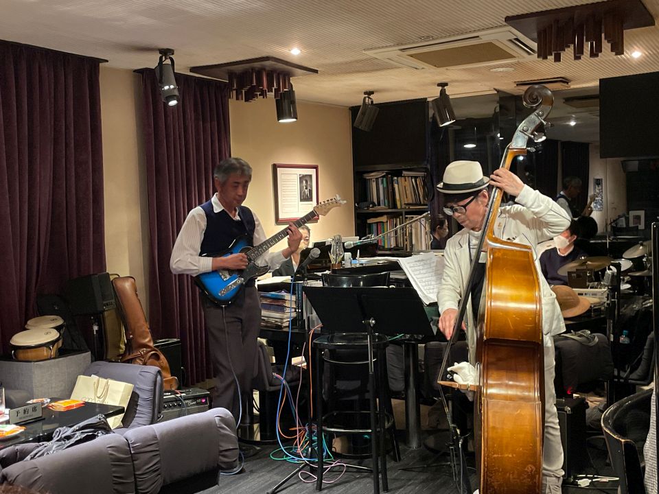 参加者で、T's時代からお世話になっている理科大ジャズ研大先輩でベースの村山先生はもちろんいらっしゃいました。もうずいぶん長いですね。あとT'sのマスターだったテナーの高橋さん、ドラムの廣江さん、同じくドラムの細田くん、ヴォーカルの鈴木けい子さん、など知人も結構いらっしゃってました。