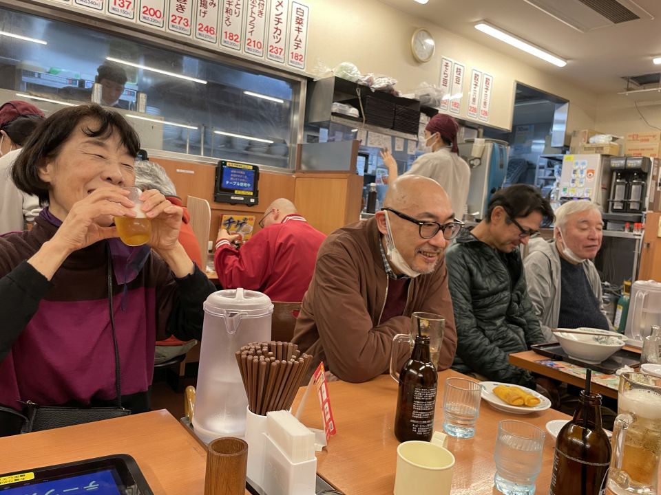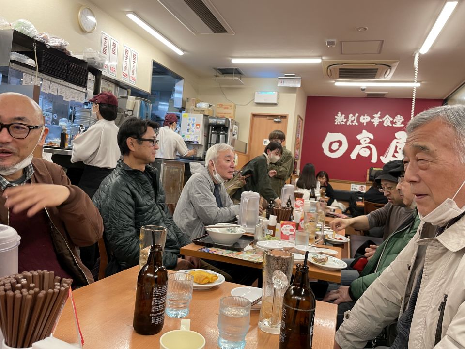 終わって店内で打ち上げ。その後、話には聞いていましたが、常連さんを中心に日高屋へ行っているとの事で私も参加し、打ち上げの続きとなりました。
