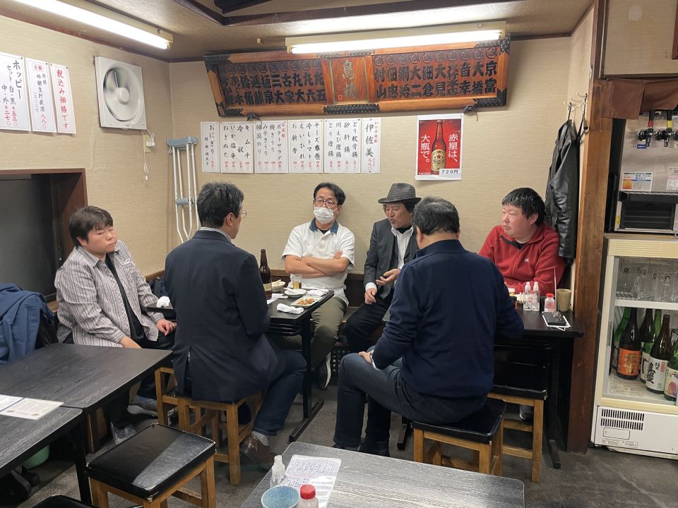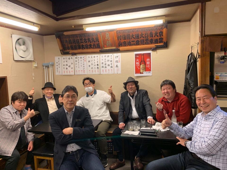 終わってメンバーとお客さん2人で、高田馬場駅近くの居酒屋「一軒め酒場」で打ち上げ。