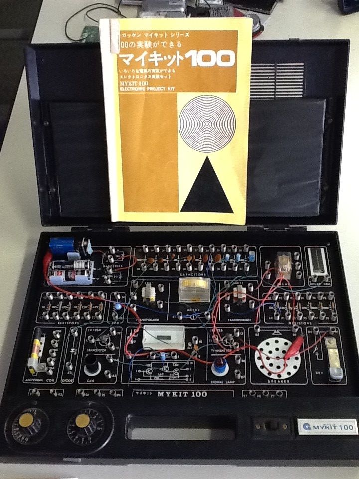 これはコンピューターではありませんが、私の電子の対する興味はすべてはここから始まりました。私が小学生の頃、1970年代ですが、学研から電子ブロックやマイキットなどのシリーズが発売されていて、これはその1つです。小学校の中学年か高学年のときにお年玉で買ったような覚えがあります。