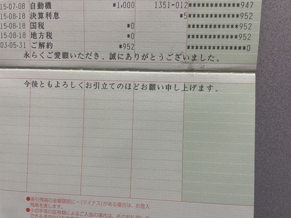 最後に残った金融機関の解約。しかしこれは都内ではなく地方銀行の財形で、しかも25年ぐらい前に確認のために送って来たハガキ1枚しか残ってないのです。証書類もない。