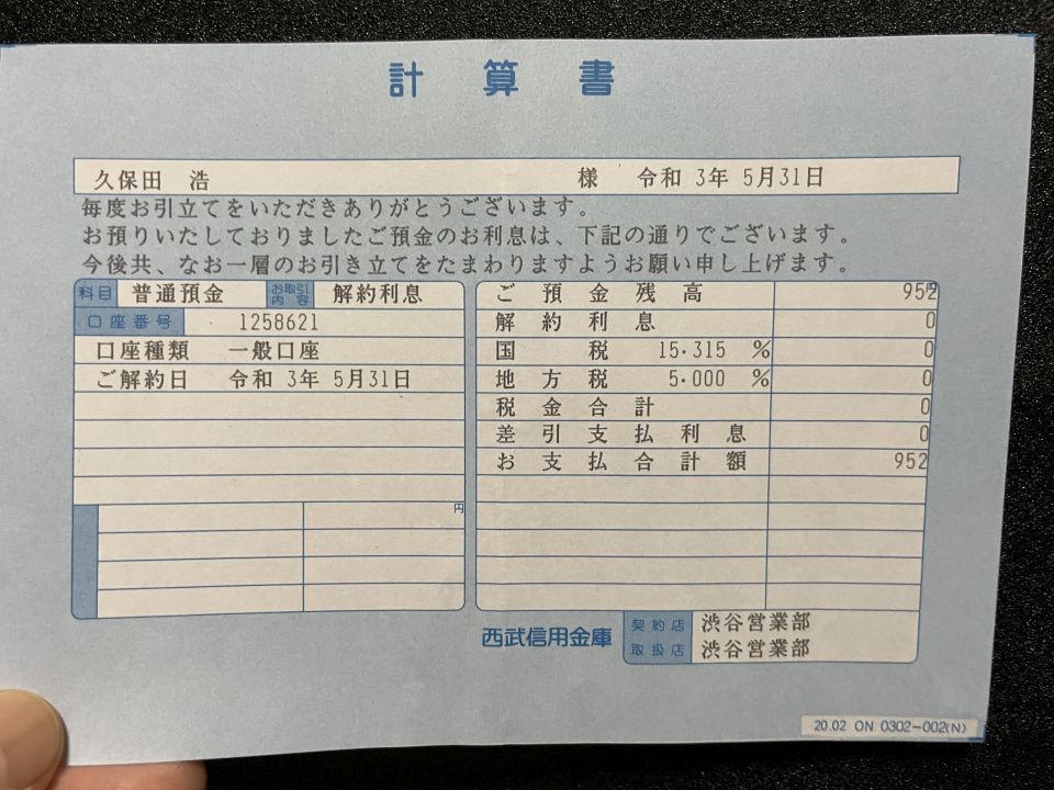 平成信用金庫は20年ぐらい前に西武信用金庫と合併し、既にないです。前年、泊まっている場所から一番近い西武信金へ行ったところ、渋谷営業部でないと解約出来ないと言われ、やらずのままになっていました。何せもうコンピューター上にデータはなく、紙しか残ってなく、支店では処理出来ないとの事でした。